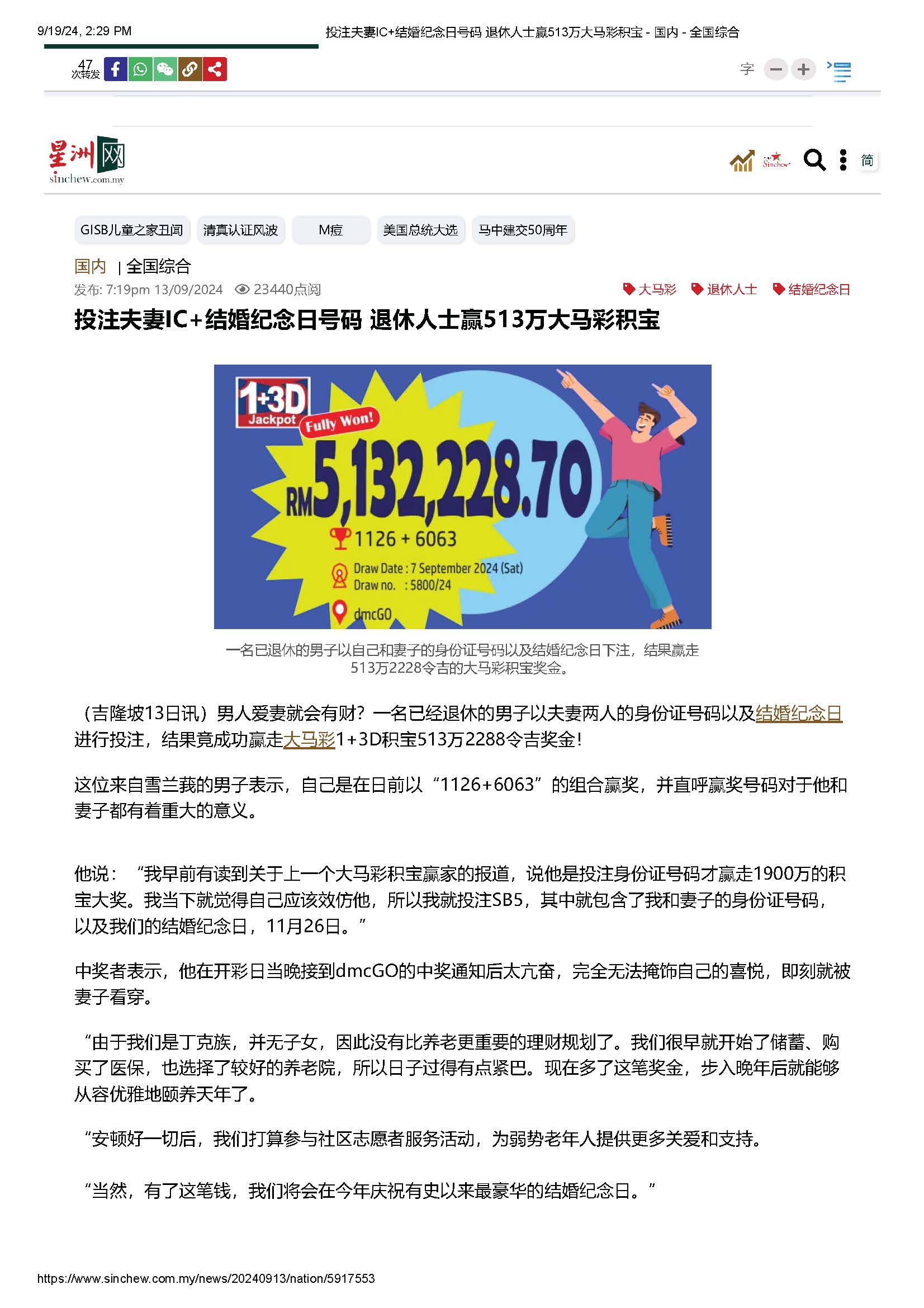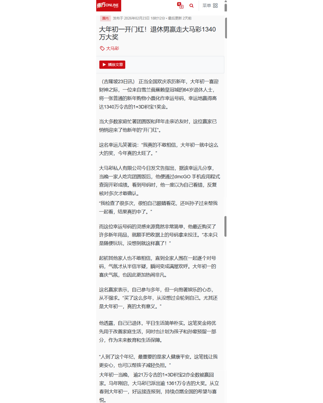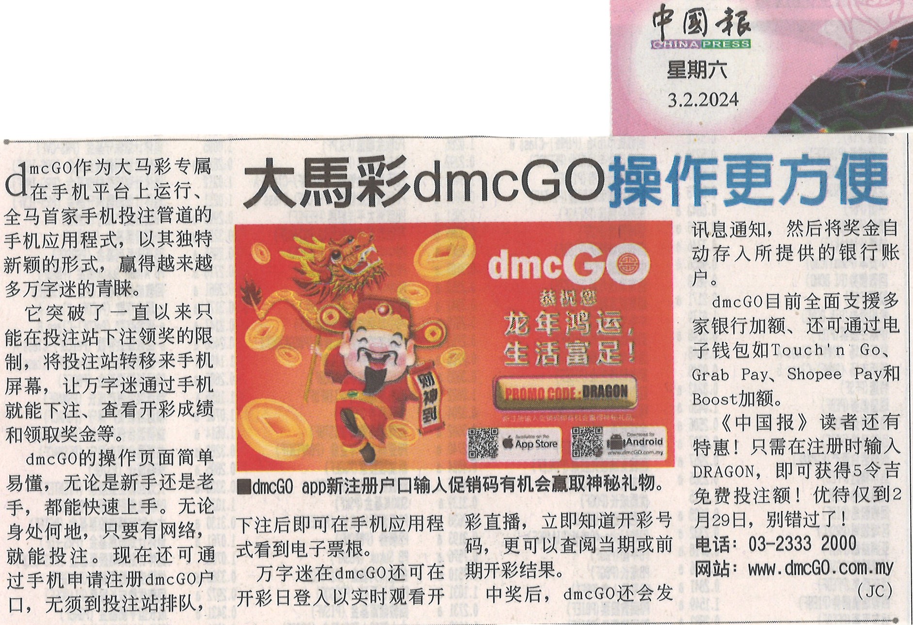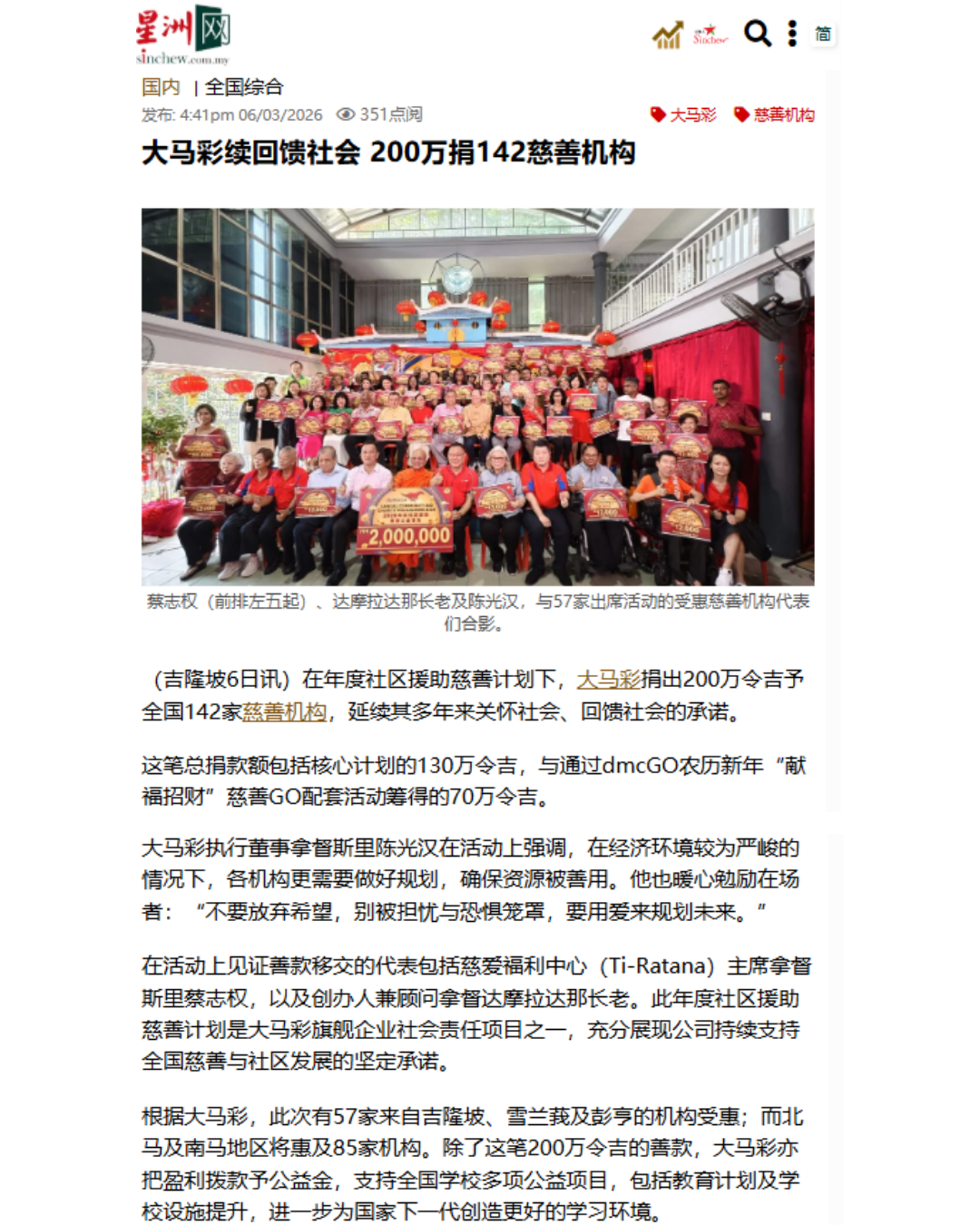 Da Ma Cai is featured in major dailies over a wide range of activities especially in the areas of education and social welfare, as well as news featuring our promotional campaigns and contests for loyal customers, and winning stories on our lucky Jackpot winners are also featured here.